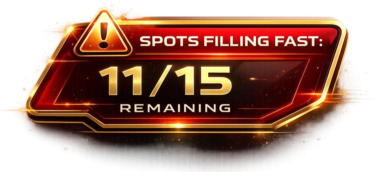 These 15 spots represent our total capacity. Once they're gone, the next available slot is 45 days out at full price.